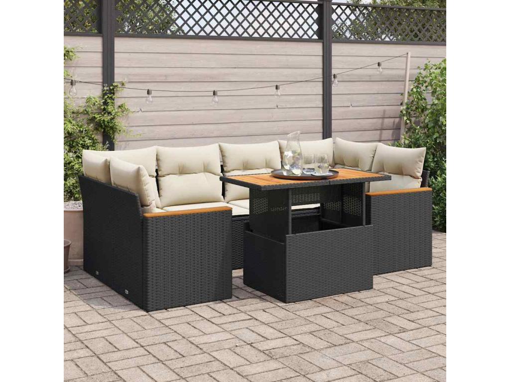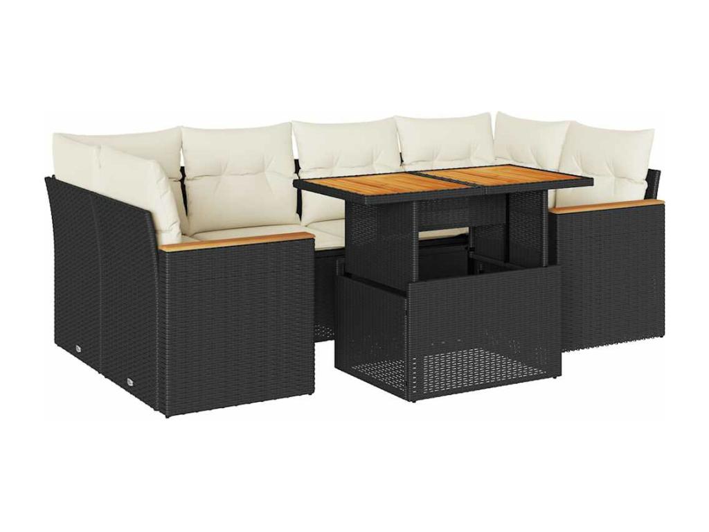 Set di mobili da esterno in resina intrecciata nera da 6 pezzi con cuscini