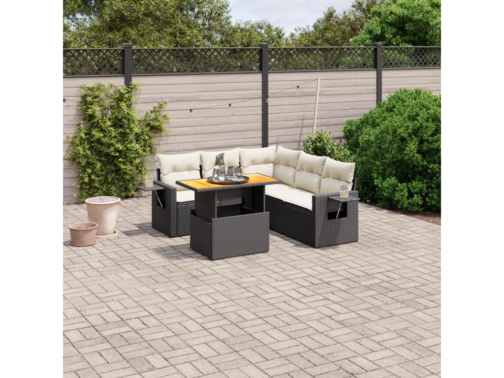 Set di mobili da esterno in resina intrecciata nera da 6 pezzi con cuscini
