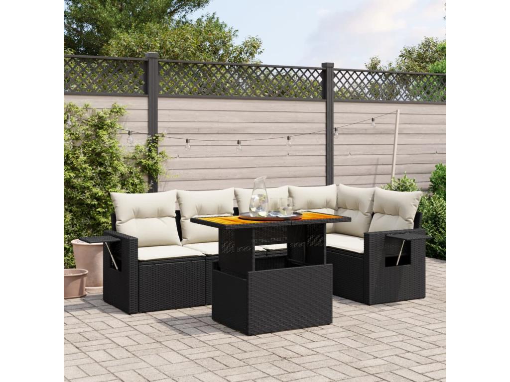 Set di mobili da esterno in resina intrecciata nera da 6 pezzi con cuscini