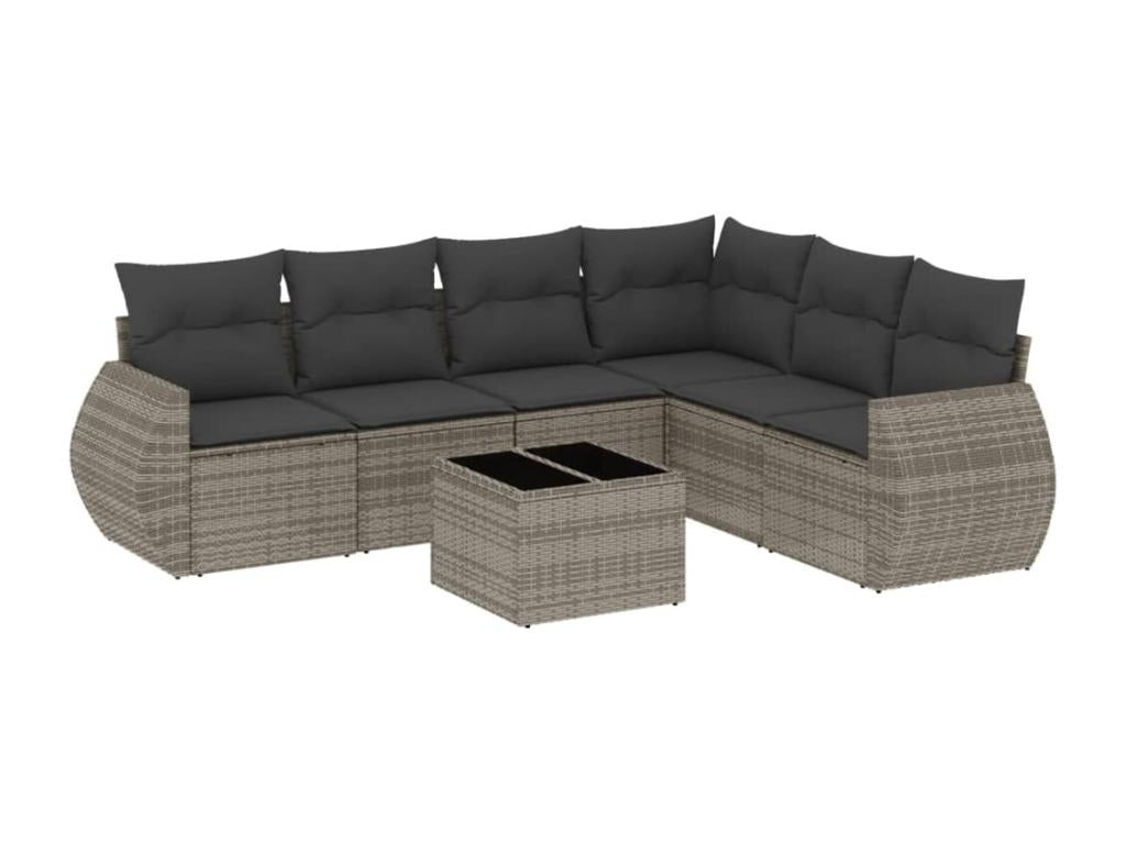 Set di mobili da esterno in resina intrecciata grigia da 7 pezzi con cuscini