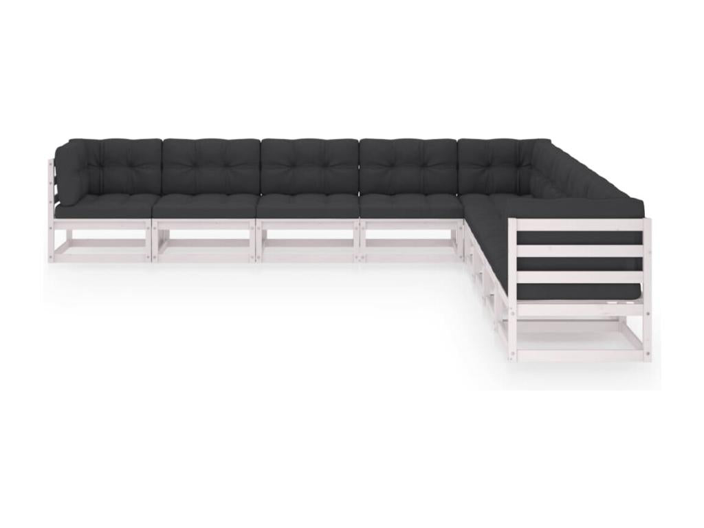 Set di mobili da esterno in legno massello di pino bianco da 9 pezzi con cuscini
