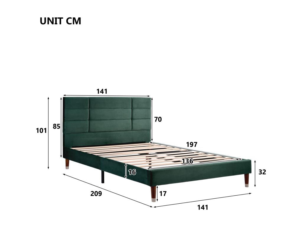 Testiera in velluto verde con testiera, 140 x 200 cm