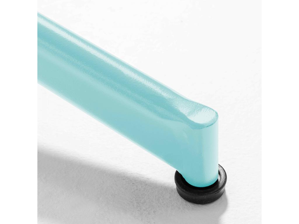 La combinazione di finitura blu turchese e struttura in acciaio conferisce un aspetto pulito e senza tempo.